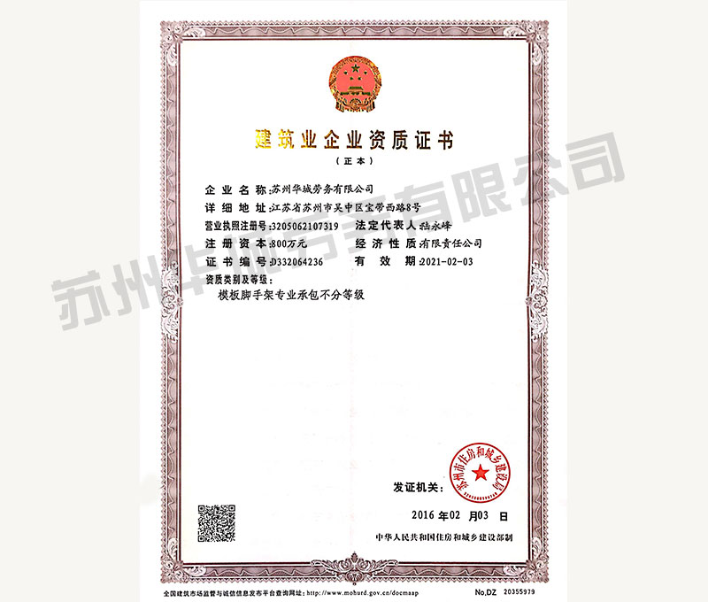 可以承接房屋建筑室內(nèi)外裝飾裝修業(yè)務。公司下設獨立法人單位-蘇州華城勞務有限公司。